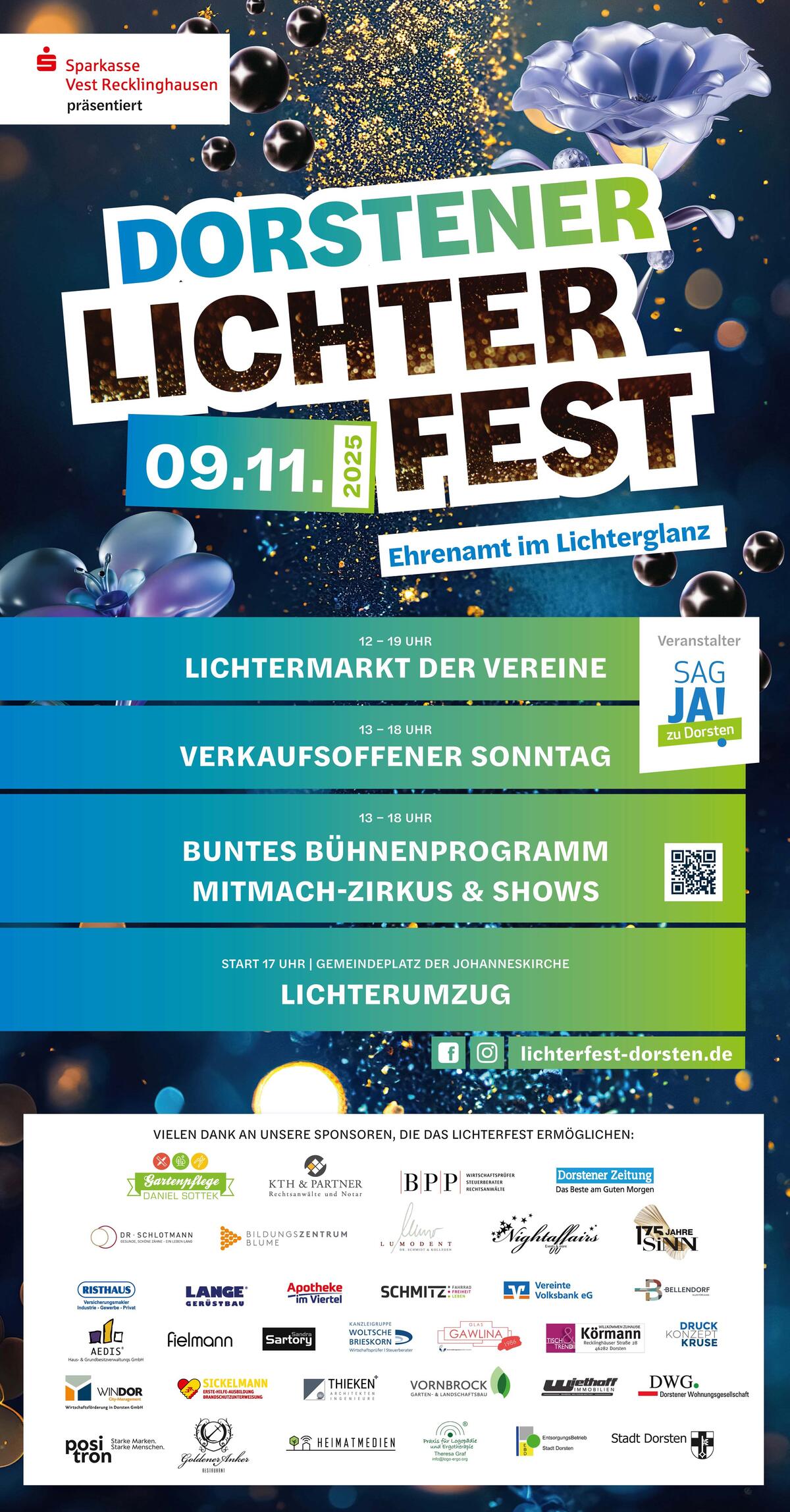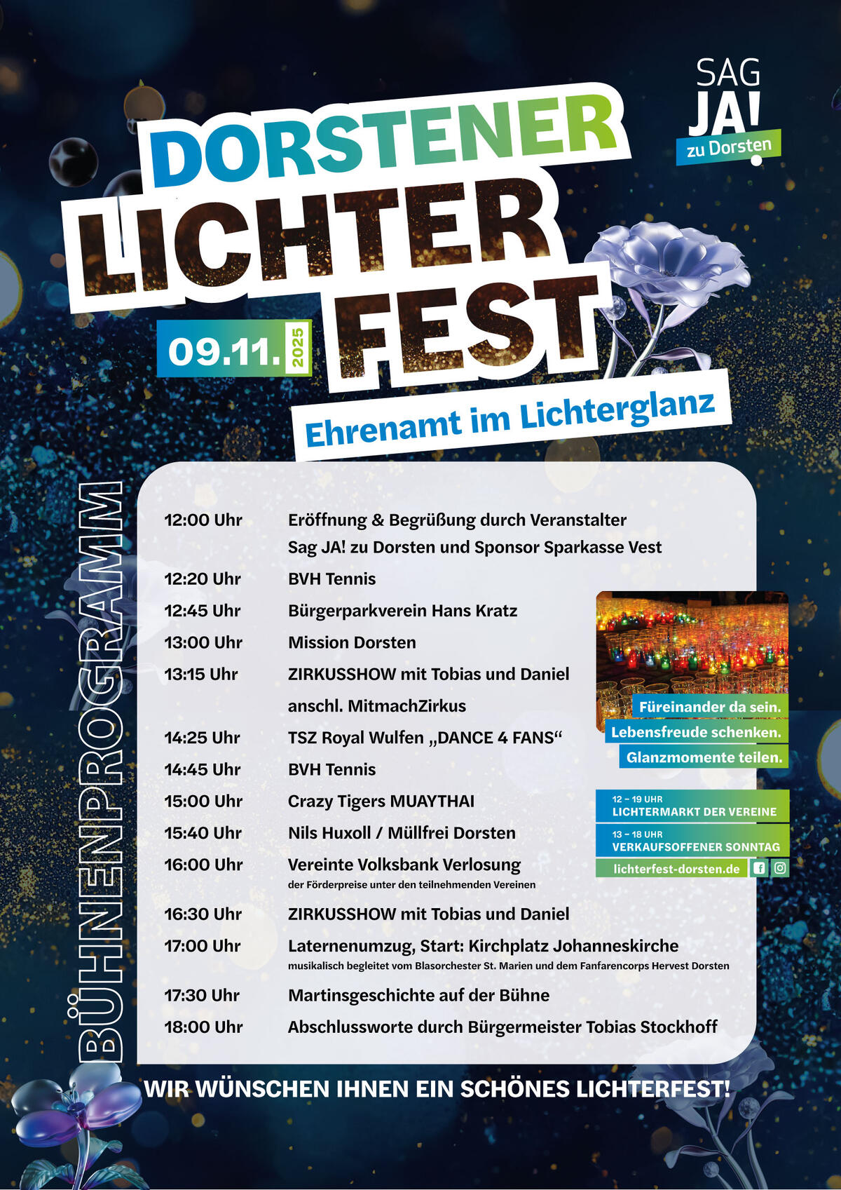 Unser Verein Sag JA! zu Dorsten war schon von Beginn an ein Teil des Lichterfestes und seit 2019 sind wir nun der Veranstalter dieses schönen Festes geworden.
